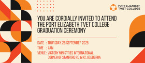 Port Elizabeth TVET College proudly invites the Class of 2024 to save the date for our annual Graduation Ceremony.